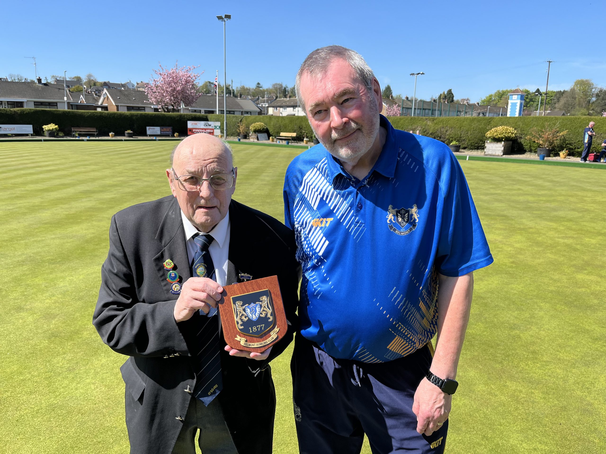 Arvon Bickerstaff is presented with a plaque in recognition of his many years dedication of fund raising for the VBL’s nominated charity, Children Fund for Cancer, from Jim Carroll, Belmont Bowling Club. Arvon may...
